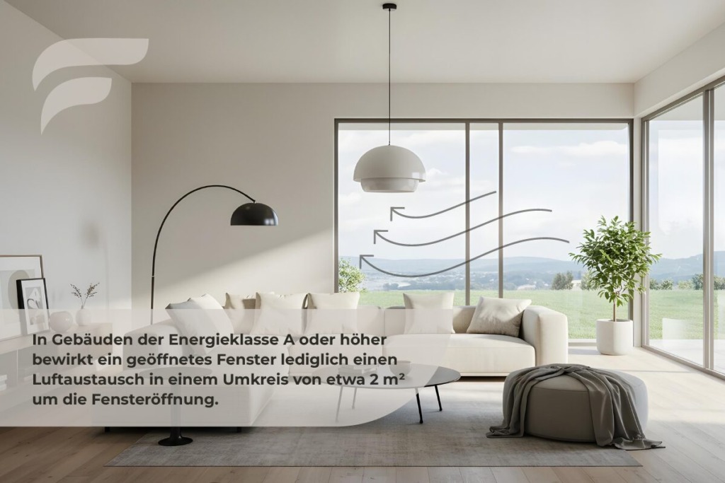 Nach allgemein anerkannten Standards sollte die Raumluft alle 2-3 Stunden ausgetauscht werden. Aber wenn Sie in einerm luftdichten Haus ein Fenster öffnen, wird nur der unmittelbare Bereich darum herum (innerhalb von etwa 2 m²) gelüftet. Sicher, Sie können einen Luftzug erzeugen, indem Sie mehrere Fenster öffnen – aber im Winter bedeutet dies, dass wertvolle Wärme verloren geht.